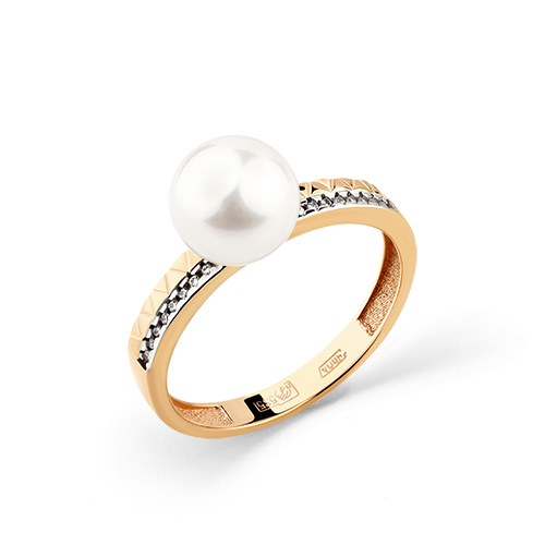 Нежное кольцо с жемчугом и фианитами выполнено с сочетанием красного и белого золота 585 пробы
