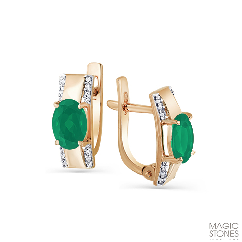 Каждая серьга инкрустирована зелёным агатом овальной формы огранки, которая делает камень особенно эффектным, а его цвет - более глубоким.