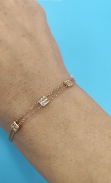 Нежный цепочный браслет из красного золота 585 пробы с геометрическими вставками, украшенными сверкающей алмазной гранью, станет отличным подарком близким людям
