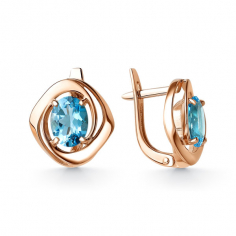 Яркие серьги с объёмным фантазийным дизайном, выполнены из красного золота 585 пробы, украшены нежно- голубыми топазами. Изящная закрепка пропускает свет со всех сторон, тем самым раскрывая нежность цвета, игру и блеск камней. Тип замка - английский, самый надежный и удобный. Изделие представлено брендом ЛЕНА ТОММИ. В комплект поставки входит: