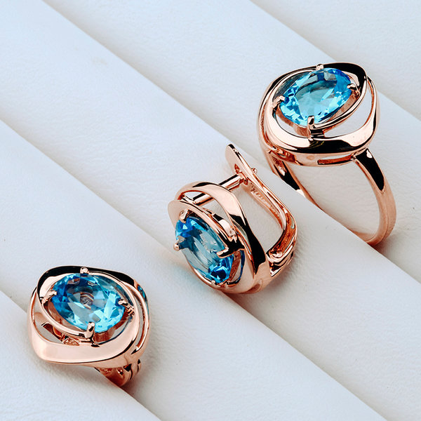 Кольцо, красное золото, топаз, проба 585
