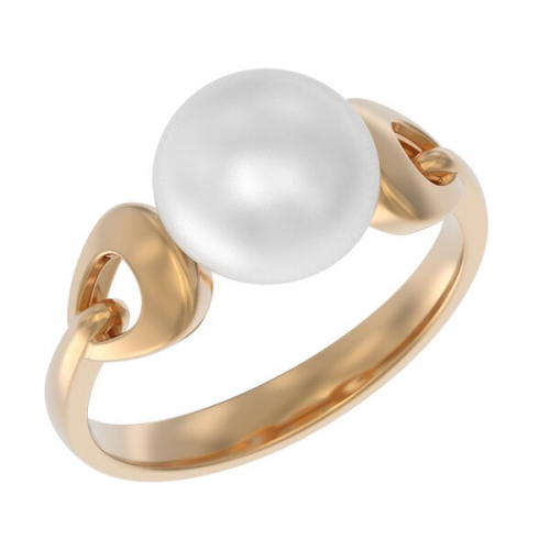 Нежное кольцо выполнено из красного золота 585 пробы, украшено великолепным жемчугом белого цвета