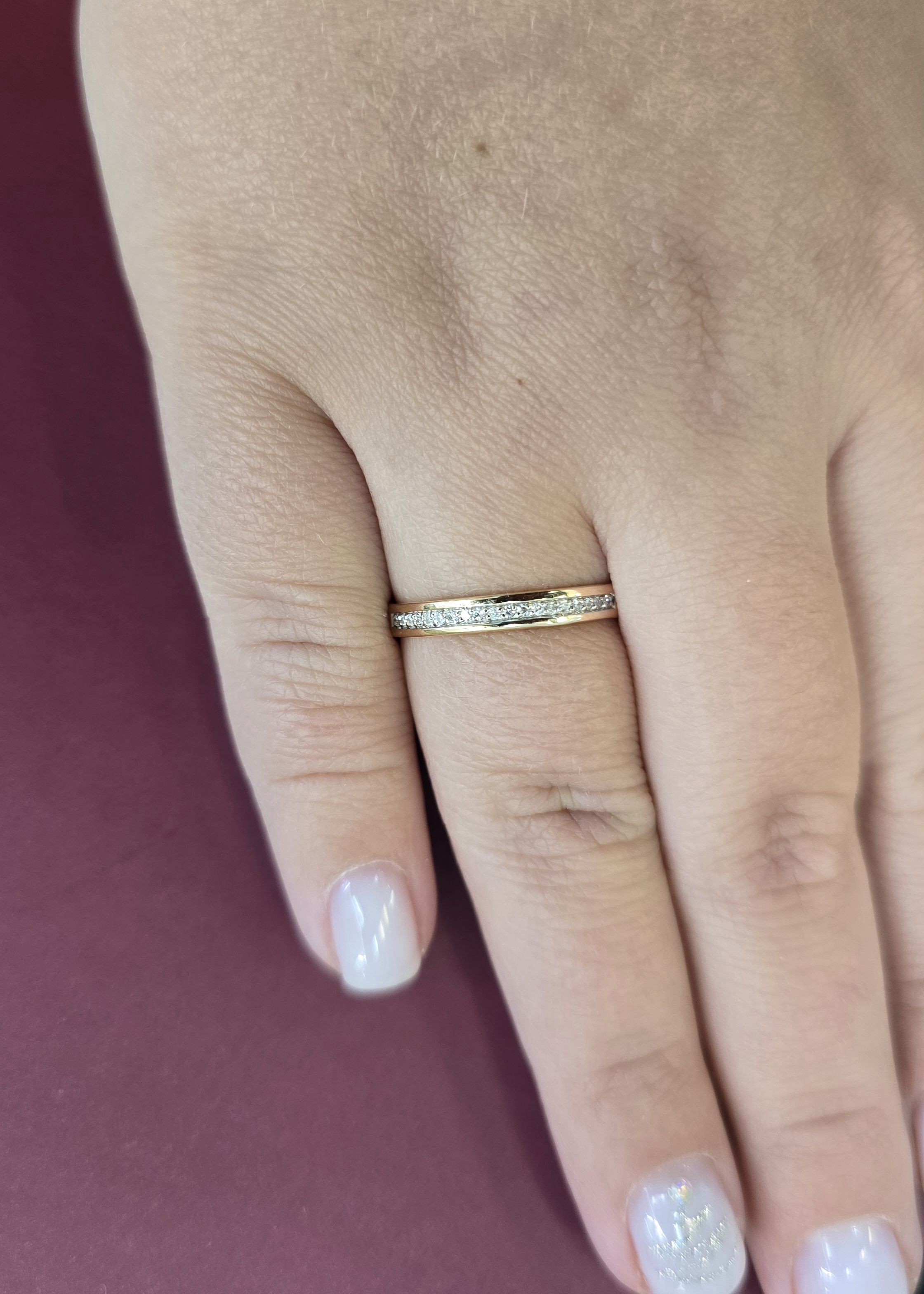 Долго выбирали обручальные кольца, в итоге остановились на классике для него, а для меня с дорожкой для бриллиантов. Смотрится гармонично. В кольце очень удобно, хотя я раньше не любила их носить. Спасибо за грамотную консультацию!