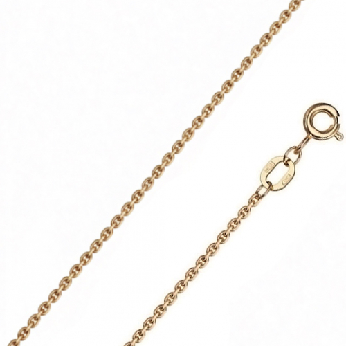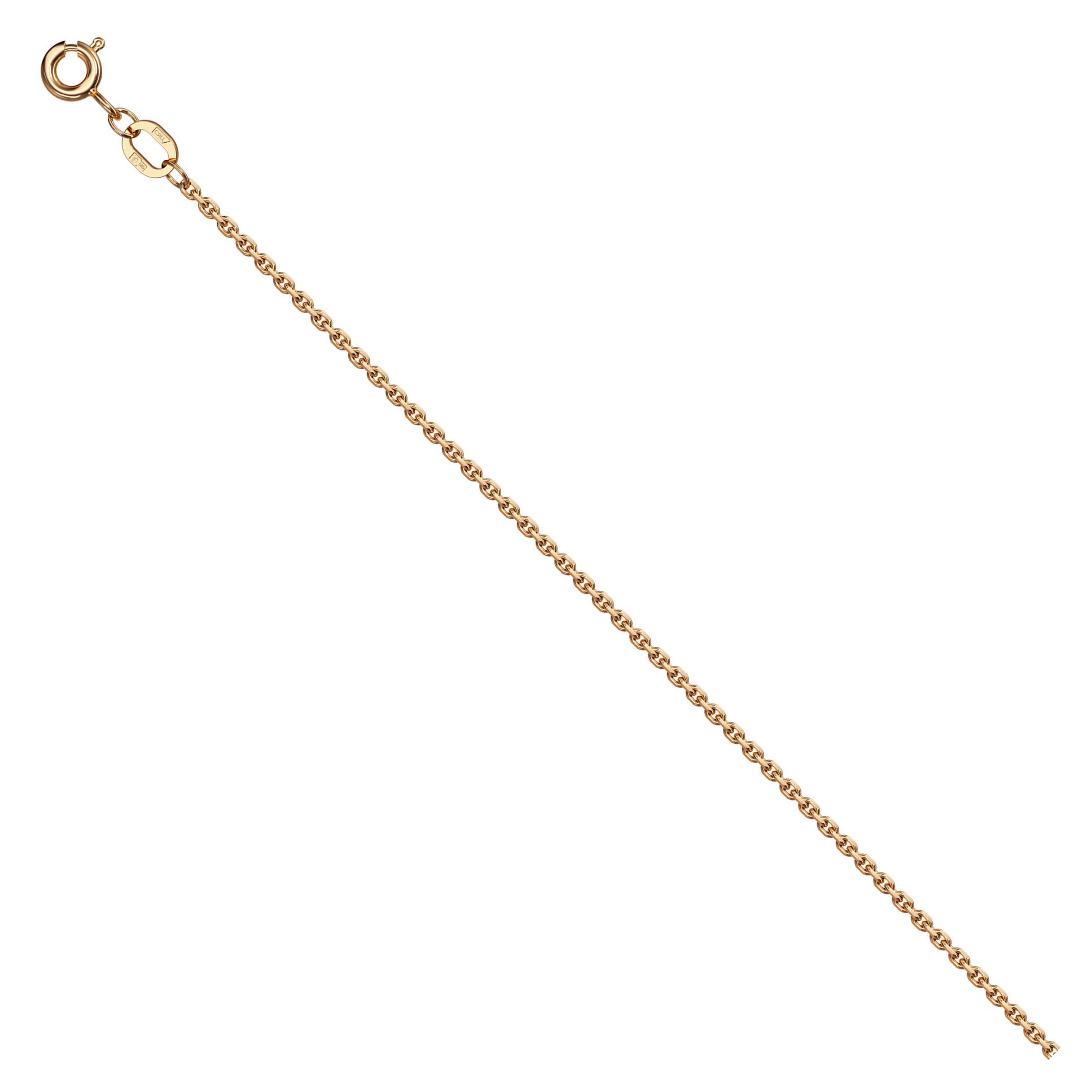 Полновесная цепь из богатого красного золота 585 пробы, выполненная традиционным якорным плетением с захватывающей игрой света, обеспечиваемой бриллиантовым блеском алмазной грани