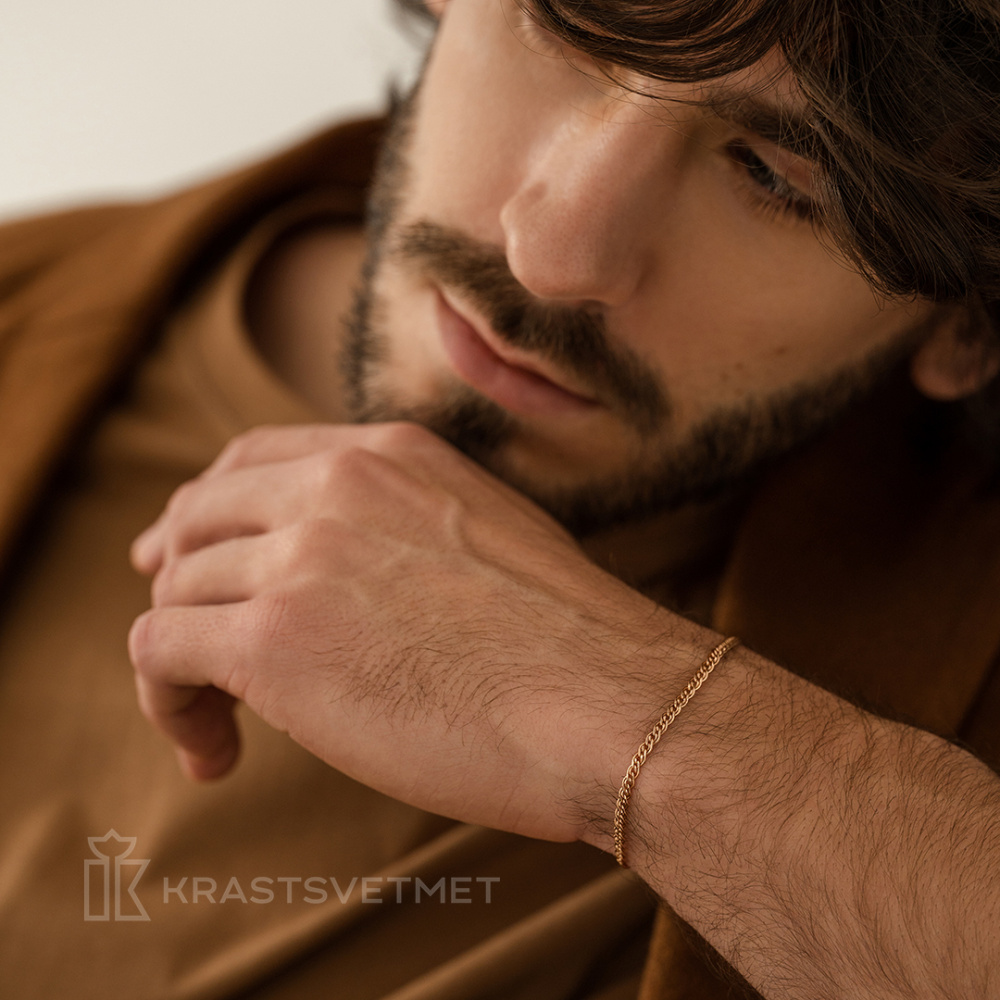 Полновесный браслет из красного золота 585 пробы с утончённым плетением «нонна» и уникальной отделкой алмазной гранью. Узоры звеньев, выполненные в виде сложной комбинации мелких деталей, сочетаются с интенсивным свечением, даря изделию непревзойдённую роскошь и зрительно увеличивая его объём. Будет отлично смотреться как на мужчине, так и на женщине. Диаметр проволки 0,50 мм. Представлено брендом КРАСЦВЕТМЕТ.