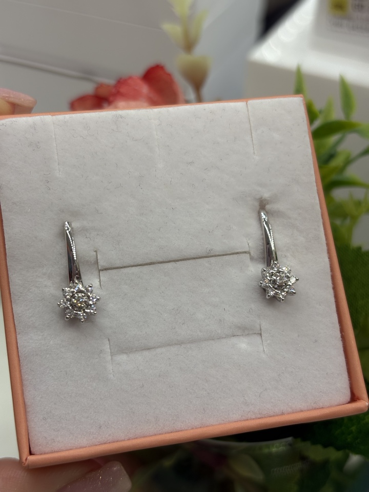 Всё хорошо, красивые, небольшие серьги. Пришли в подарочной коробке. Бриллианты сверкают очень красиво.