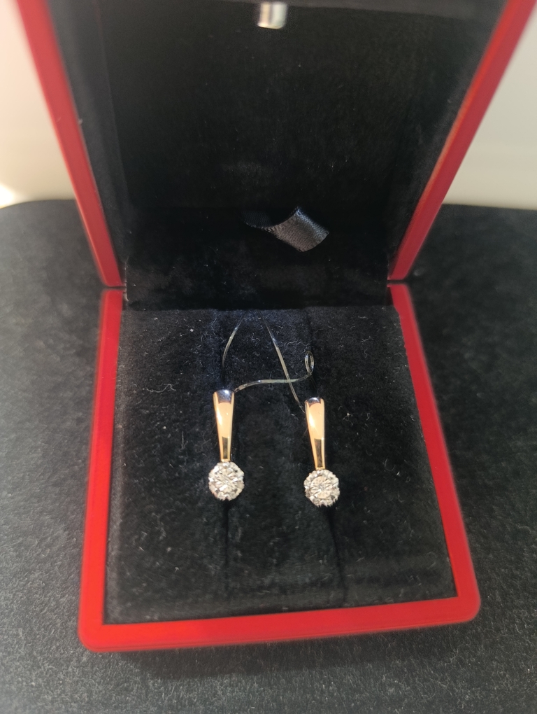 Классные сережки не хлипкие, бриллиантики удивили, маленькие, а сверкают...выбрала в красном золоте.