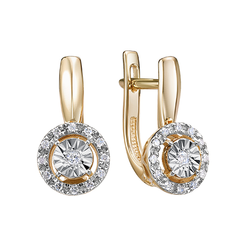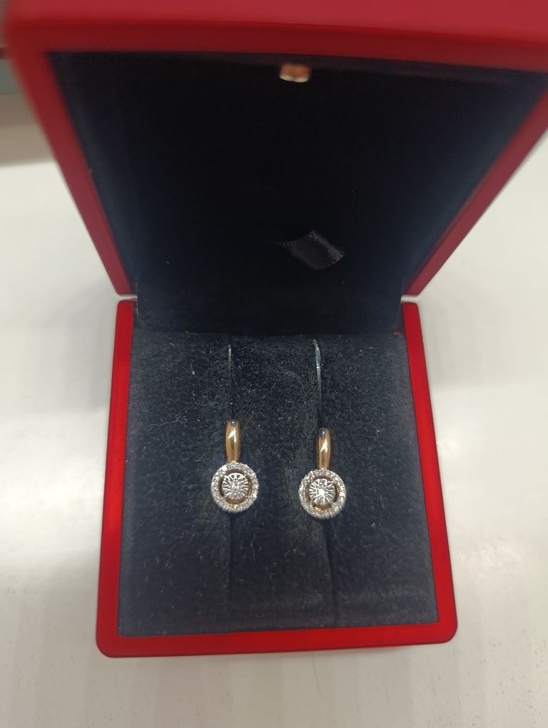 Серьги из белого и красного золота 585 пробы с бриллиантами на английской застежке — это изысканное украшение, сочетающее в себе элегантность и роскошь
