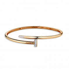 Стильный жесткий браслет «Гвоздь Картье», выполненный из красного и белого золота 585 пробы и украшенный сверкающими фианитами, — это украшение, которое подчеркивает элегантность и индивидуальность