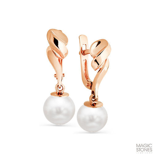 Серьги классического дизайна из красного золота 585 пробы, украшенные жемчугом, навсегда остануться в моде.