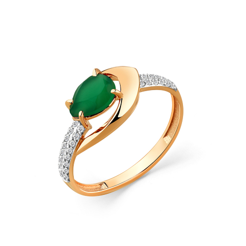 Элегантное нежное кольцо, выполнено из комбинированного золота 585 пробы, украшено ярким агатом в инкрустации сияющих фианитов