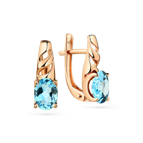 Серьги с голубыми топазами выполнены из красного золота 585 пробы