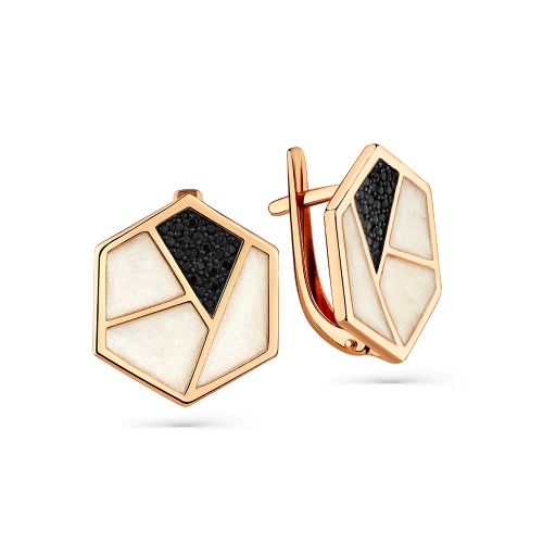 Яркие стильные серьги выполнены из красного золота 585 пробы, украшены шпинелью чёрного цвета и белой ювелирной эмалью. Тип замка - английский, самый надежный и удобный. Изделие представлено брендом MAGIC STONES. В комплект поставки входит: