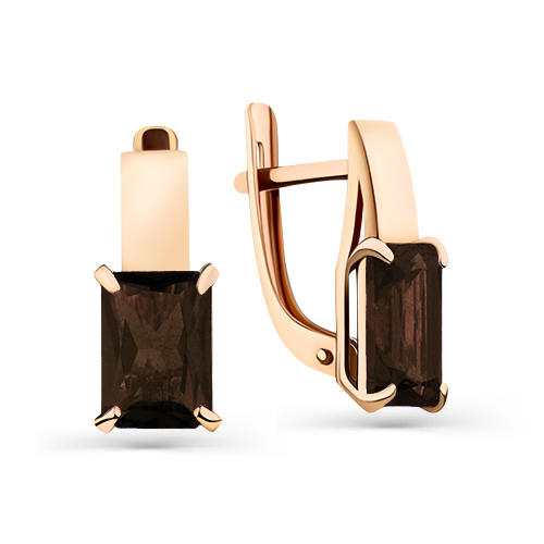 Стильные серьги выполнены в классическом исполнении из красного 585 пробы, украшены дымчато-коричневыми раух-топазами