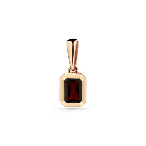 Эффектная подвеска с гранатом насыщенного красного цвета выполнена из красного золота 585 пробы