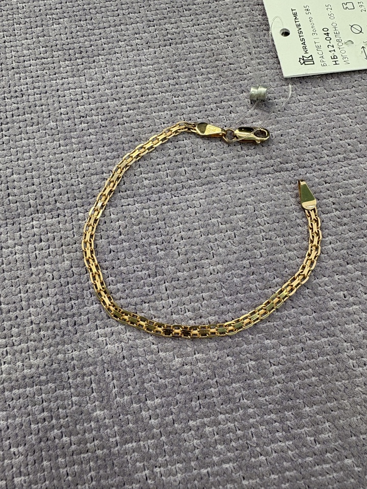 Долго выбирала браслет и наконец остановилась на золотом с плетением бисмарк 585 пробы. Не прогадала! Во-первых, он полновесный — чувствуется добротность. Во-вторых, смотрится на руке просто бомбически: не слишком массивный, но и не тонкий, идеально ложится. Качество выше всяких похвал — никаких шероховатостей, всё аккуратно. Теперь ношу не снимая!
