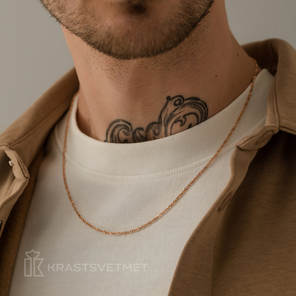 Цепь из яркого красного золота 585 пробы с элегантным плетением «Сингапур» и неотразимой отделкой алмазной гранью