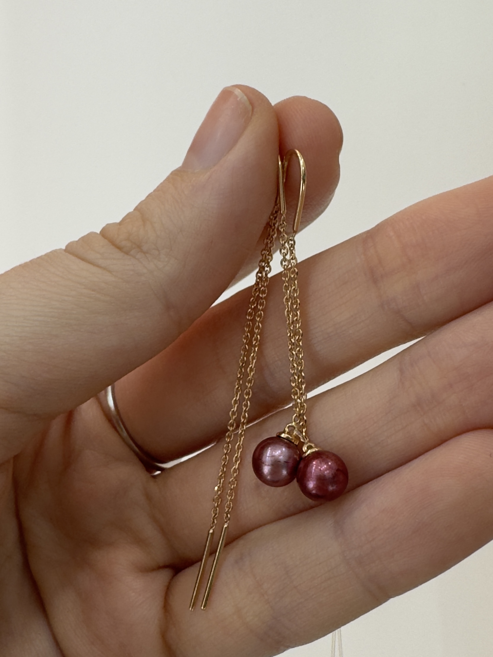 Длинные серьги-протяжки из красного золота 585 пробы с натуральным жемчугом — это изысканное украшение, которое подчеркнет вашу индивидуальность и добавит образу нежности и утонченности