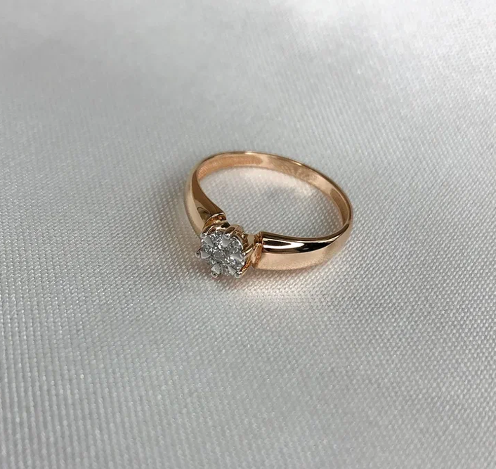 Изящное кольцо, выполненное из красно-белого золота 585 пробы, сочетает в себе элегантность, благородные материалы и классический стиль