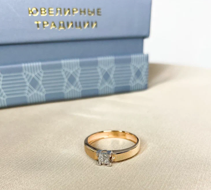 Элегантное кольцо, выполненное из комбинированного золота 585 пробы, гармонично сочетает в себе сдержанную роскошь и классическую утончённость