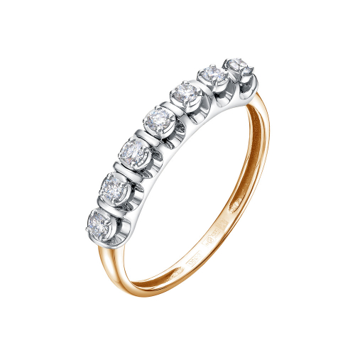 Это кольцо из благородного комбинированного золота 585 пробы — воплощение утончённой классики и блеска настоящих драгоценных камней. Инкрустированное семью натуральными бриллиантами, оно обладает сдержанным, но выразительным сиянием и станет достойным украшением как для повседневного образа, так и для торжественного случая. Характеристика камней: 7 Бриллиант Кр 57 3/6 0.224ct