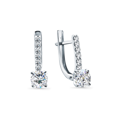 Серьги, белое золото, фианит, проба 585