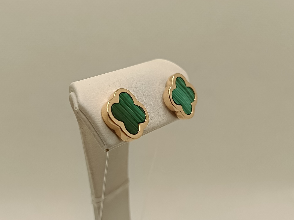 Серьги, красное золото, малахит, проба 585