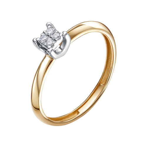 Лаконичное и элегантное кольцо из красно-белого золота 585 пробы, украшенное четырьмя натуральными бриллиантами, прекрасно подойдёт для тех, кто ценит сдержанную роскошь и изысканные детали