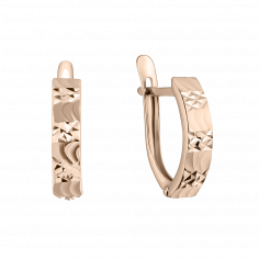 Изящные серьги, украшенные сверкающей алмазной гравировкой, выполнены из красного золота 585 пробы