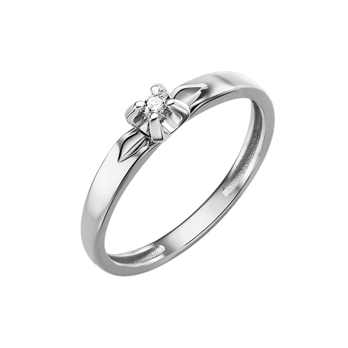 Минималистичное и элегантное кольцо от российского бренда «Ювелирные Традиции», выполненное из белого золота 585 пробы, украшено одним натуральным бриллиантом весом 0