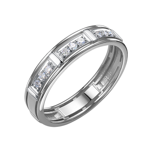 Элегантное кольцо от бренда «Ювелирные Традиции», выполненное из благородного белого золота 585 пробы, украшено девятью натуральными бриллиантами с огранкой Кр-17