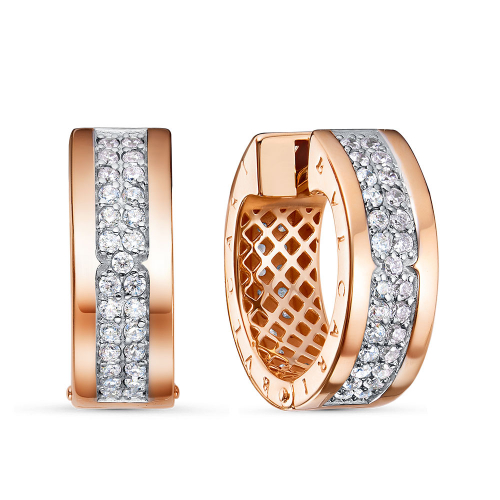 Круглые серьги из красного и белого золота 585 пробы с дорожками сверкающих фианитов и английской застежкой — это элегантное украшение, подчеркивающее вашу индивидуальность и чувство стиля