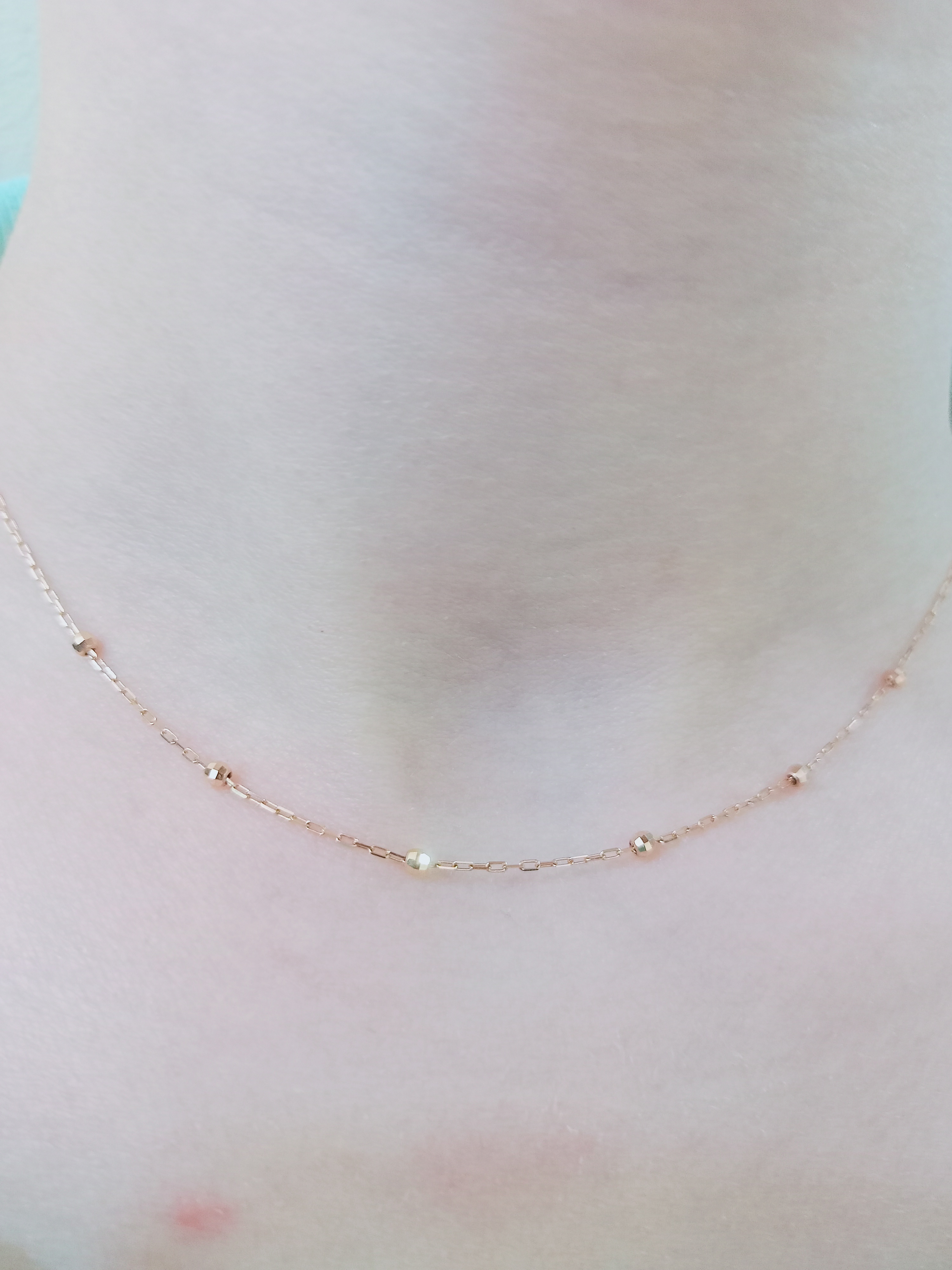 Цепочное колье с вставками-шариками из красного золота 585 пробы