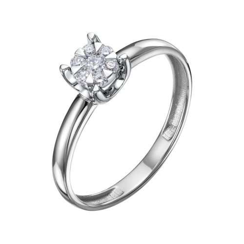 Элегантное кольцо из белого золота, украшенное семью натуральными бриллиантами, сочетает в себе утончённость и благородный блеск