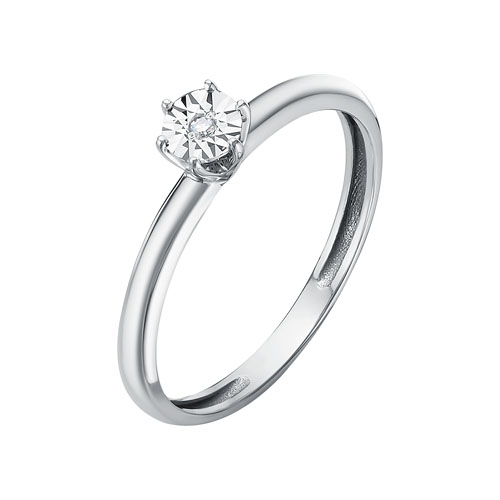 Нежное кольцо в минималистичном исполнении, выполненное из белого золота 585 пробы, украшено одним натуральным бриллиантом