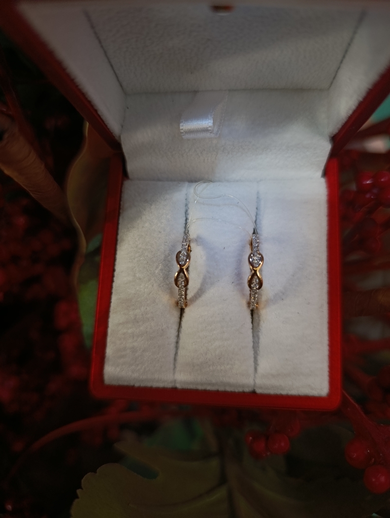 Очень красивые серьги конго. Брилианты при искуственном свете и на солнце горят!
