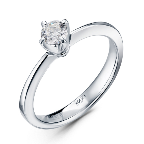 Исключительное кольцо из благородного белого золота 585 пробы увенчано одним ярким бриллиантом безупречной огранки