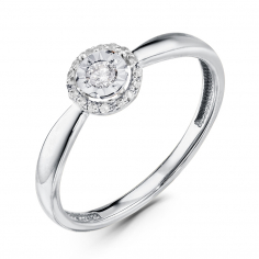 Нежное кольцо из блестящего белого золота 585 пробы украшают бриллианты в виде живописной россыпи, каждая из которых отражает чистый солнечный свет тысячей граней