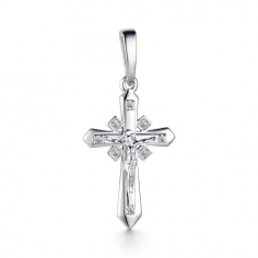 Подвеска в форме крестика выполнена из белого золота 585 пробы
