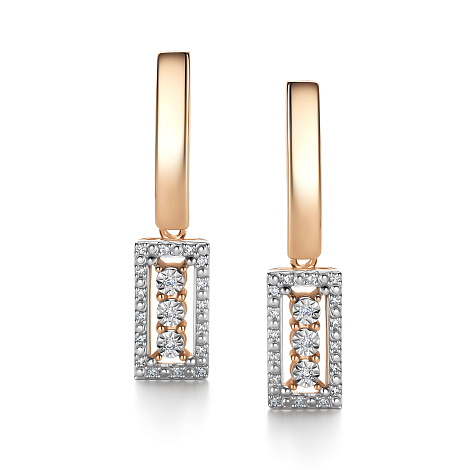 Серьги, комбинированное золото, бриллиант, проба 585