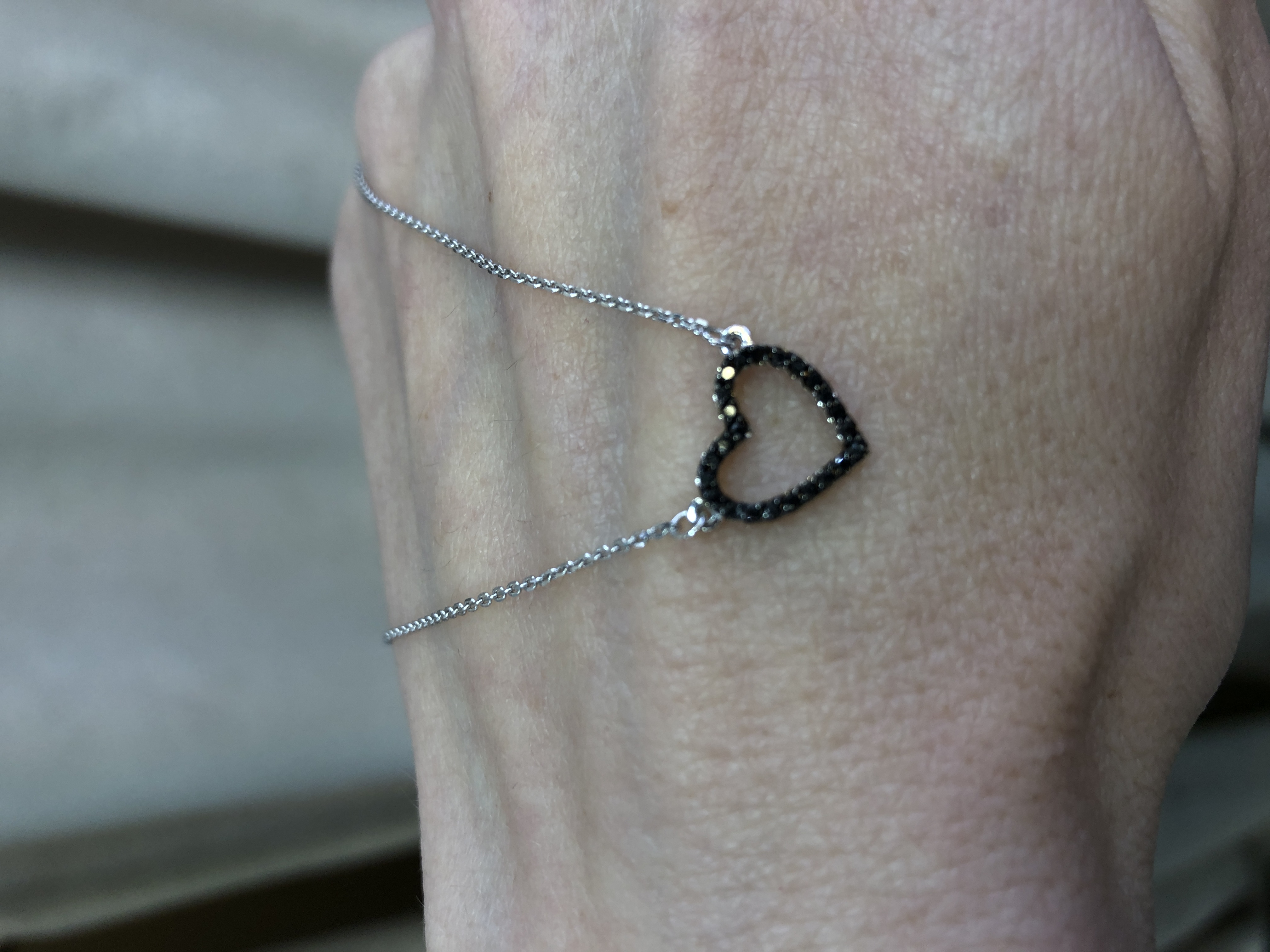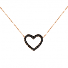 Нежное и романтичное цепочное колье украшено сердцем с чёрными сверкающими бриллиантами