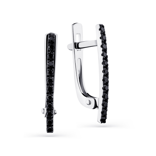 Стильные серьги, украшенные чёрными бриллиантами, выполнены из белого золота 585 пробы