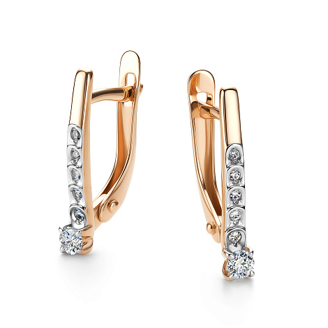 Серьги из комбинированного золота 585 пробы из коллекции Romantic компании «Алькор» — это гармоничное сочетание теплых оттенков красного золота и блеска бриллиантов