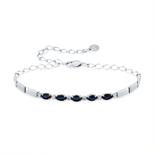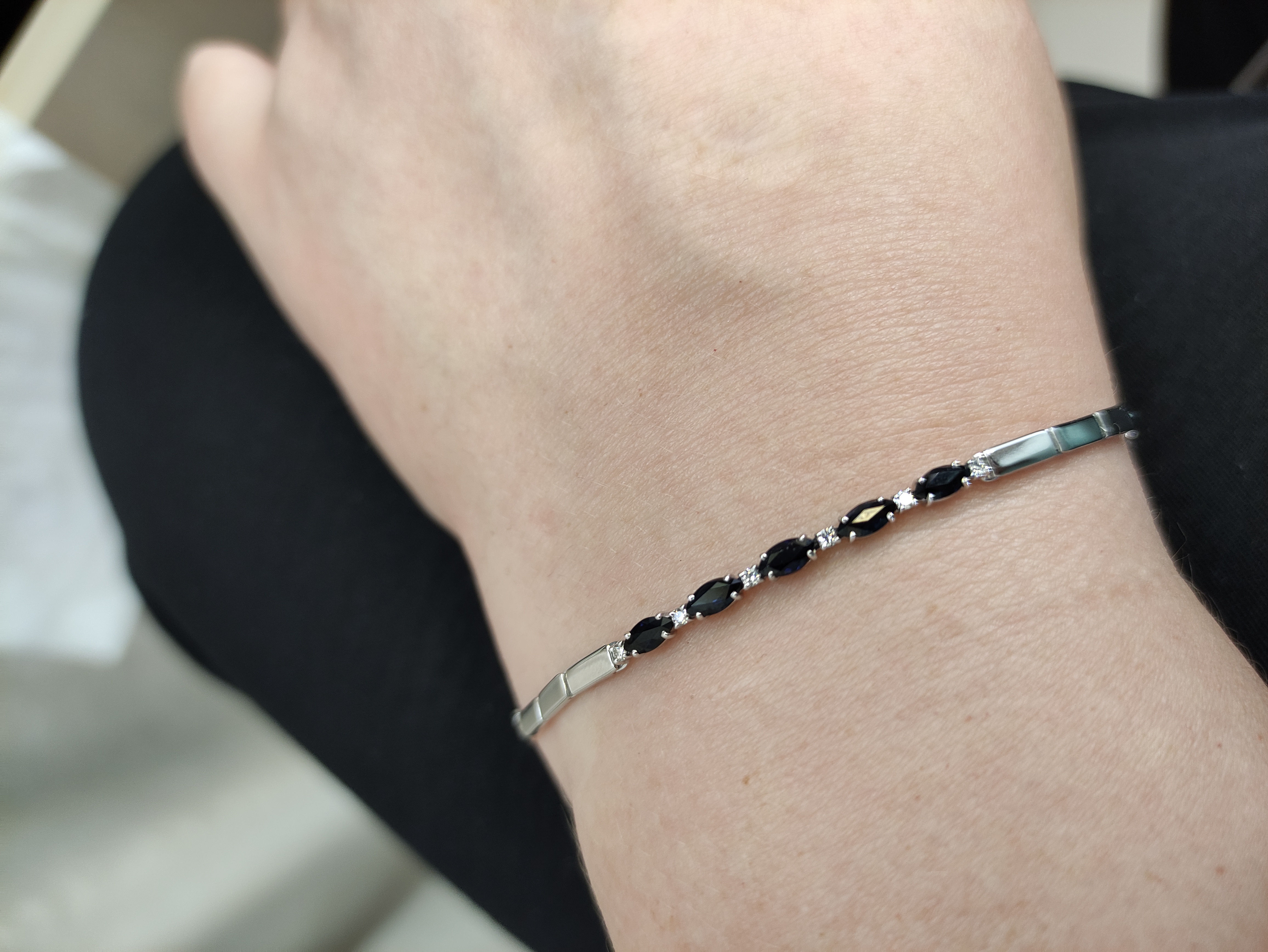 Красивый браслет. Давно хотела дополнить комплект с сапфирами. На фото камни кажутся почти черными, но на самом деле они темно синие. Его можно носить с чем угодно, он ко всему подойдет. Можно перестегнуть размер как удобно. Я очень довольно)))