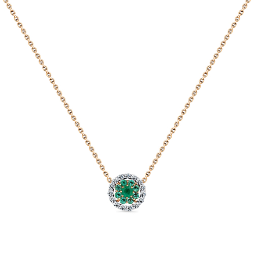Колье из красного золота с подвеской-бегунком, изготовленной из красного и белого золота с изумрудом и бриллиантами, объединяет в себе элегантность и современность