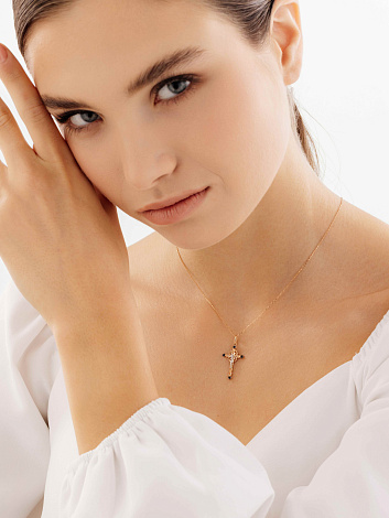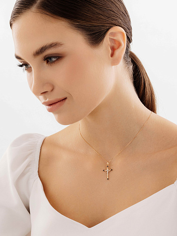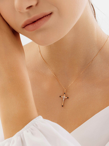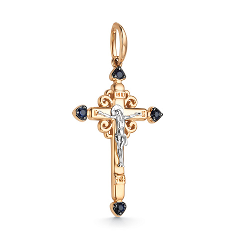 Крест из комбинированного золота 585 пробы из коллекции Religious компании «Алькор» — это гармоничное сочетание глубокого смысла и ювелирного искусства