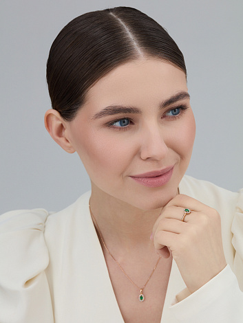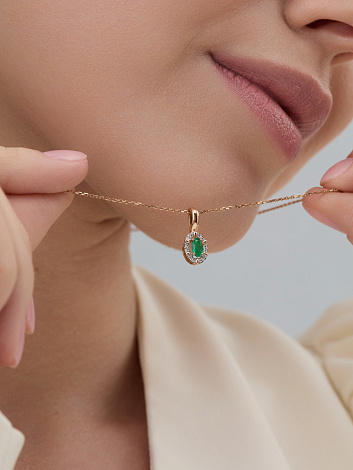 Подвеска-бегунок из комбинированного золота 585 пробы из коллекции Magic Colors компании "Алькор" — это утончённое украшение с живым акцентом цвета. Центральный овальный изумруд мягкого зелёного оттенка гармонично сочетается с сиянием бриллиантов, создавая игру света и глубины. Контраст теплого и холодного золота подчёркивает элегантный дизайн, делая подвеску яркой и изысканной деталью образа. Средняя характеристика камней: 12 Бриллиант Круг 57 0.04 4/5 1 Изумруд Овал 0.202 3/3 В комплект поставки входит: