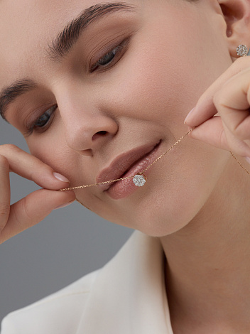 Подвеска-бегунок из комбинированного золота 585 пробы из коллекции Illusion компании "Алькор" — это эффектное украшение, в котором визуальная игра света создаёт ощущение объёма и блеска