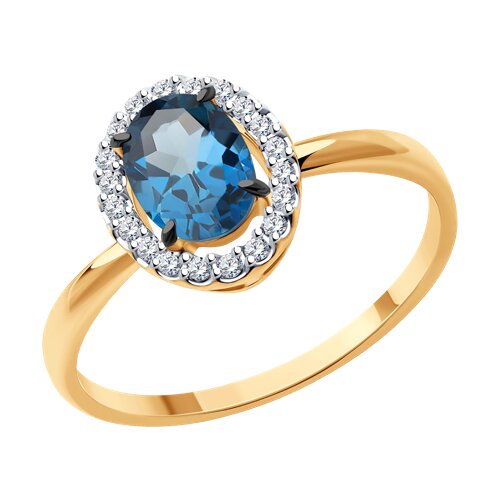 Кольцо создано из комбинаций благородных металлов: нежного красного и чистого белого золота 585 пробы, соединяя два оттенка золота в оригинальной гармонии дизайна. Центральной частью композиции является центральный камень — небесно-голубой топаз, привлекающий взгляд своей прозрачностью и чистотой цвета. Этот топаз окружают маленькие мерцающие фианиты, усиливающие световые блики и делая общий вид кольца особенно привлекательным. Кольцо станет идеальным подарком любимой женщине или украсит собственную коллекцию украшений. Представлено брендом SOKOLOV. Средняя характеристика камней: 20 × Фианит недраг, 1 × Топаз В комплект поставки входит: