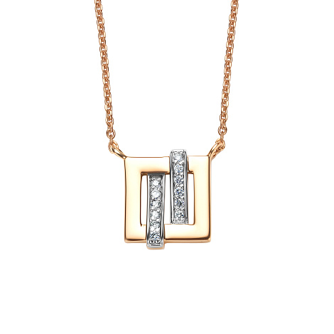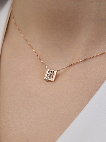 Колье из комбинированного золота 585 пробы из коллекции Trendy компании Алькор — это стильное и современное украшение с акцентом на геометрию и свет